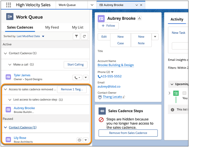 Why: With the new sub-lists, sales reps can easily scan their sales cadences for targets to resume or reassign to another rep.