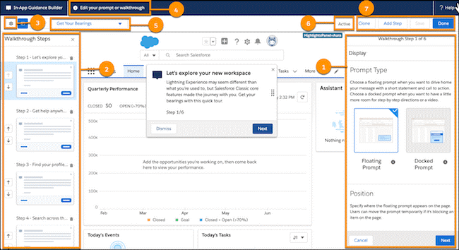 The UI for authoring in-app guidance is as similar and easy to adapt as other Salesforce builder tools. It is easy and intuitive to create walkthroughs and prompts with this tool.