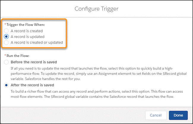 Previously, a trigger flow could only run before the Record can be saved, and the flow could only make changes to updated or new records. Now, updating, creating, or accessing a record can be done by record-triggered flows after saving to the database.