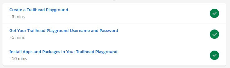 You must complete a series of challenges (tests or practical challenges) available on the platform. A test is an interactive exercise in which knowledge of a unit is assessed using multiple-choice questions. A practical challenge involves working directly in a Salesforce org.