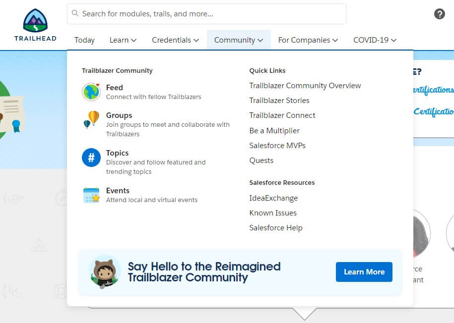 • Access the official Trailhead site here https://trailhead.salesforce.com/