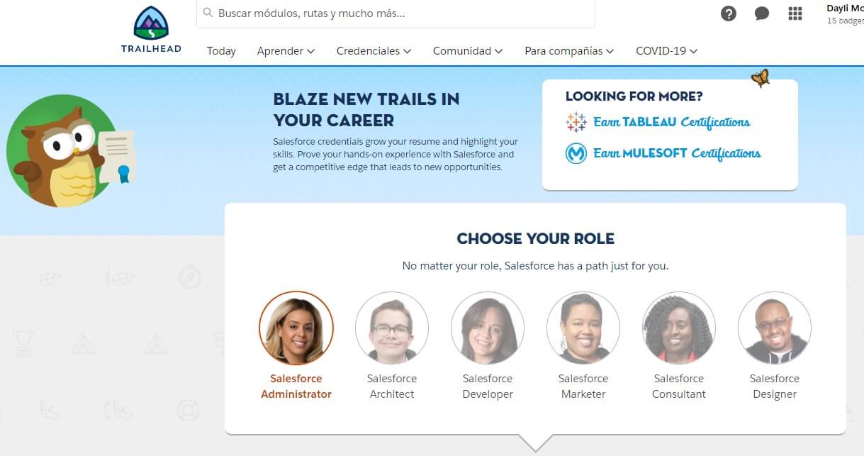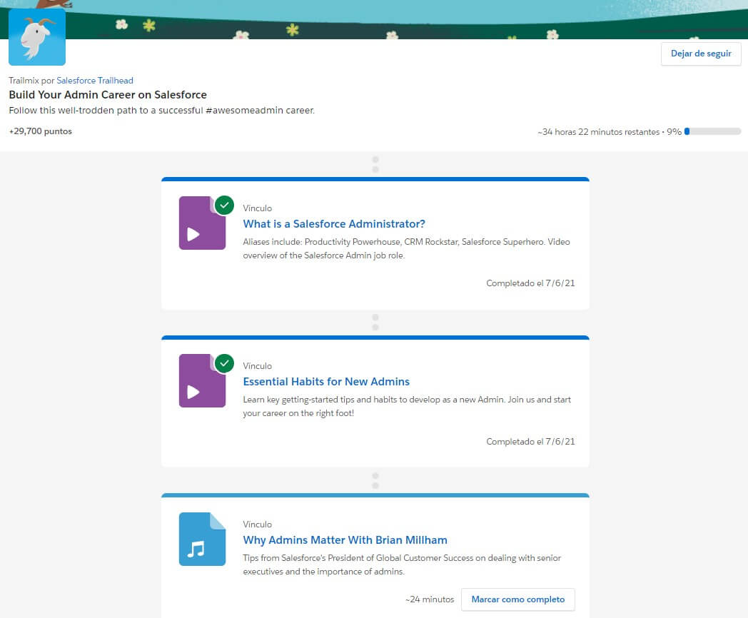Trailhead is an engaging and fun way to learn. It is available for all users, without the need for previous experience, to explore the Salesforce universe for free and acquire new skills. As you increase your level, you can earn badges as an incentive and recognition for work done. It also contains evaluations with which you can demonstrate the skills acquired. It is a library of training content that you will have access to whenever you want.