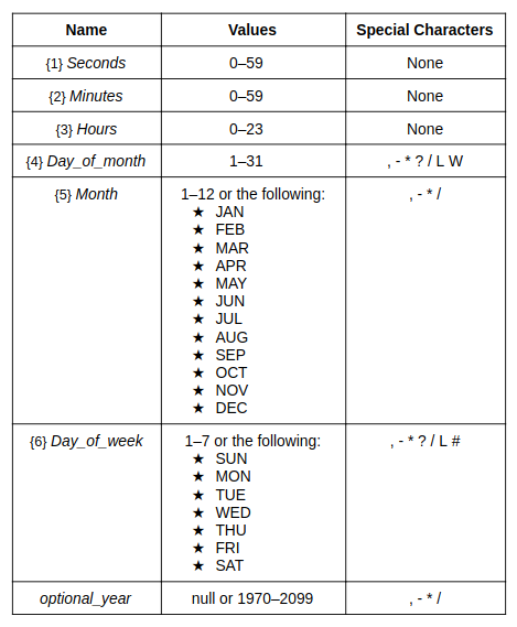 CRON expression has the following syntax: