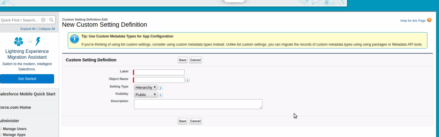 In Salesforce, both developers and administrators have made custom apps. Developers have used AppExchange to upload packages. Custome Apps uses the custom setting for that object, variables that will be used. We can store them by creating any other object and can use it to store those settings like records. The main problem we face is accessibility. Many users don’t have proper access to those objects so the app will work as we are expecting. To resolve this problem Salesforce has provided the custom setting. So we will start to understand the custom setting.