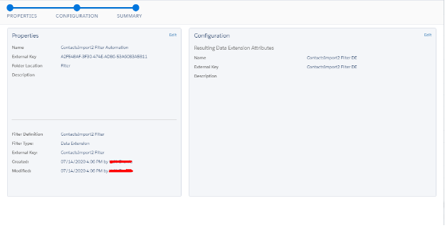 We can also populate a filtered data extension by clicking on the filter icon as highlighted in the below image:Filter activity configurations for populating a filtered data extension: