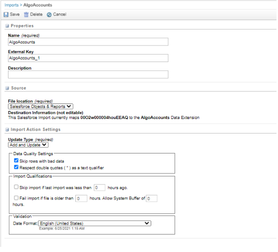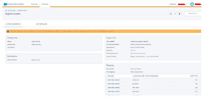 - You can manually run the import after saving it or you can use the import in an automation studio to run on a frequency basis.