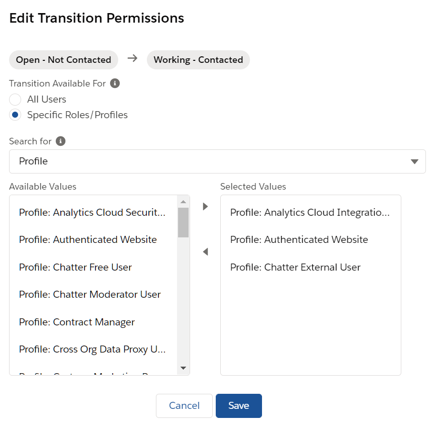 Profile & Role-based Permissions to Transition a Record Between Statuses