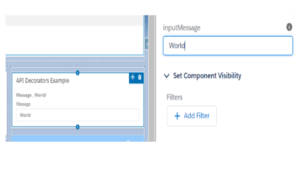 - @api: Decorate a public property with @api to make it visible. The API for a component is defined by its public attributes. The public properties of a component can be accessed by an owner component that uses it in its markup. Public spaces are responsive. Any content that mentions a reactive property in the component's template is rendered again if its value changes.