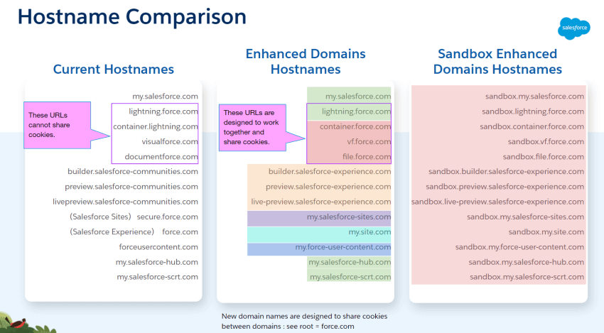 3. Work in multiple Salesforce org in the same browser at the same time. - New domain names are designed to share cookies between domains.