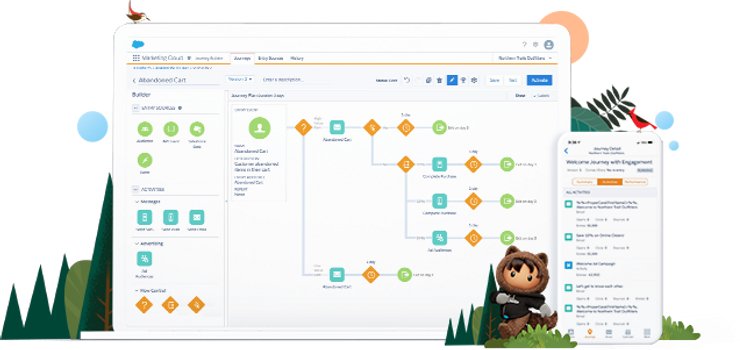 Salesforce marketing cloud provides various end-to-end services like journey builder that allows 1-1 customer journey across all channels. Email studio builds personalized email campaigns. Analyze all data with Customer 360 audiences. Mobile interactions can be customized with SMS, push notifications all with the Mobile studio. Engage with your customers through social media platforms using Social studio. Target 1-1 and most specific audience for ads and campaigns through Advertising studio. Datorama can be used to keep a track of all KPIs, marketing data, and investments.