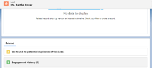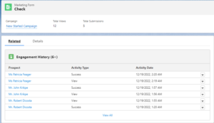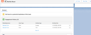 Engagement History of Lead Record After Filling the Form: