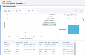 Engagement History is a generic term for a collection of fields, related lists, and other Lightning components that make it possible to show valuable prospect engagement data on your most used records. Engagement History features display Pardot engagement data on connected Salesforce records.