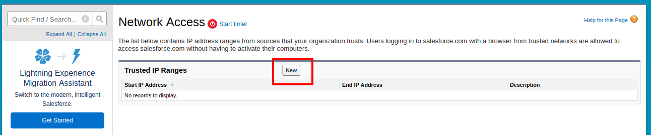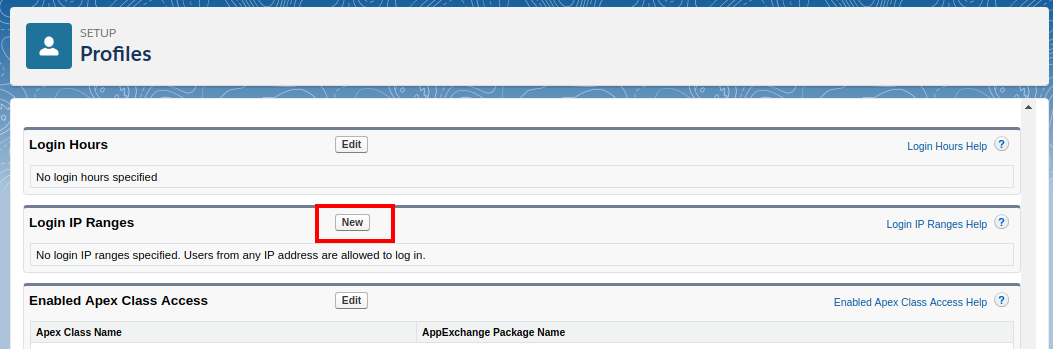 - Globally Whitelisting IP ranges for the whole Salesforce Org irrespective of the profile