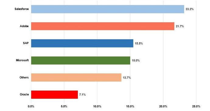 According to the graph above, Salesforce's global revenues climbed by 23.2 percent in 2018. With 21.7 percent sales growth, Adobe was a close second. Other CRM solutions, on the other hand, lagged behind Salesforce and Adobe, with SAP coming in third with a sales rise of only 15.5 percent. According to the data above, demand for the Salesforce CRM solution is growing over the world. This includes demand for both the desktop and mobile versions of Salesforce; businesses all over the world are hiring app development companies with Salesforce experience and knowledge to increase Salesforce installation and integration.